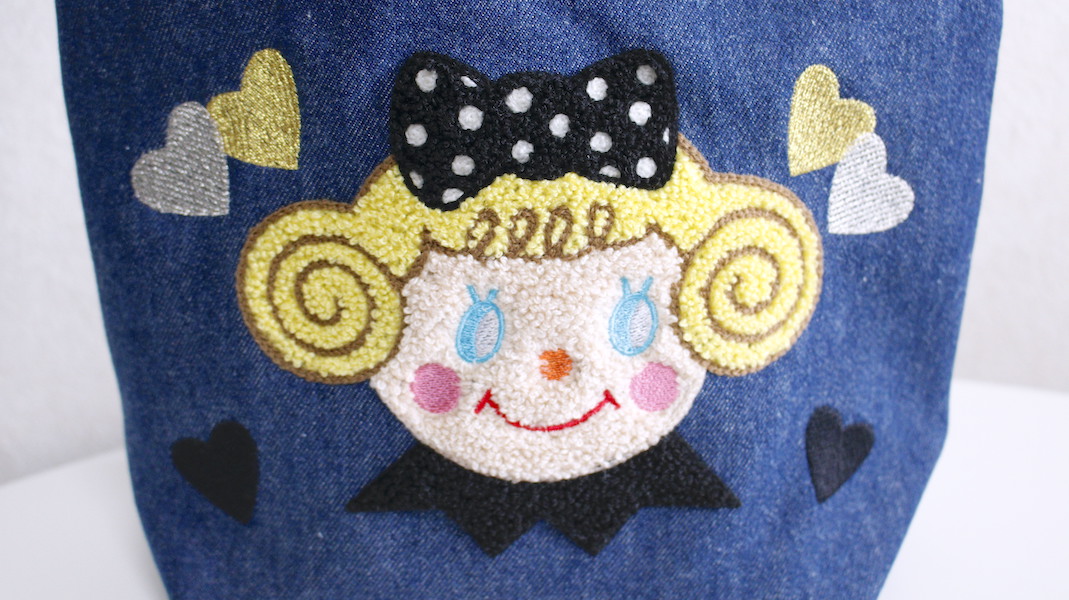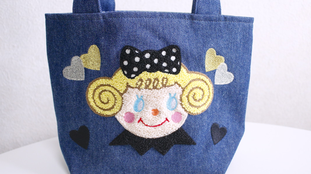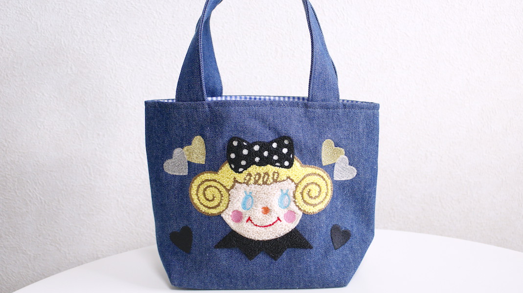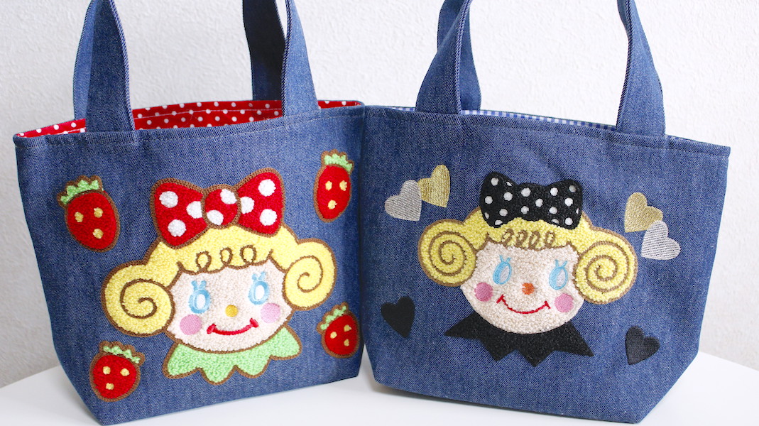 ぷくっとした立体感のさがら刺繍でお作りしたいちごちゃんのミニトート。