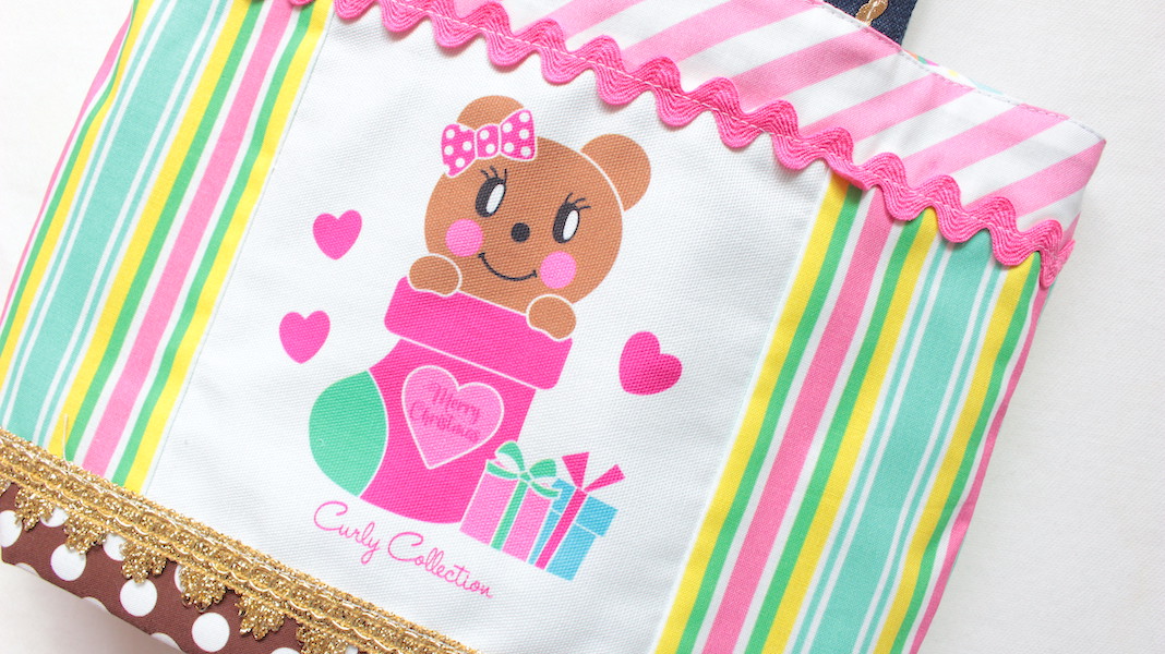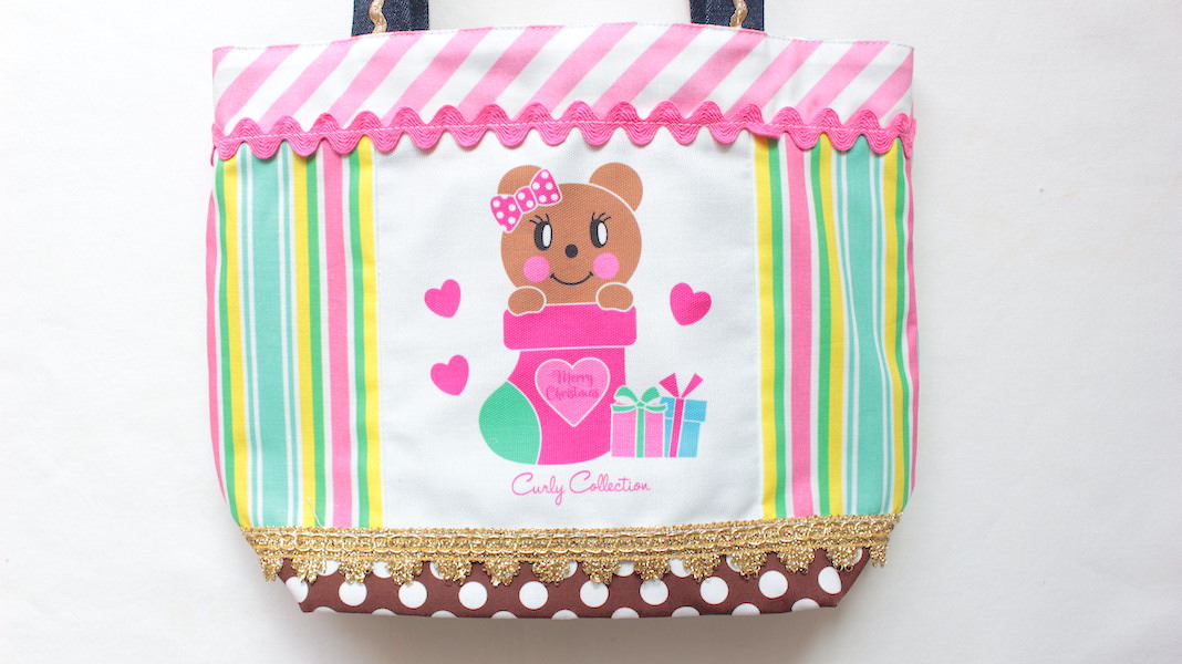 プレゼントソックスの中に入ったモカちゃんがプリントされてオリジナルトートバッグ。