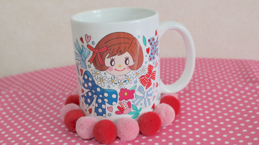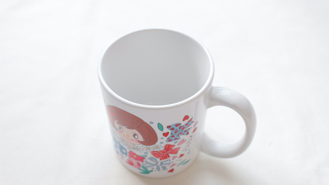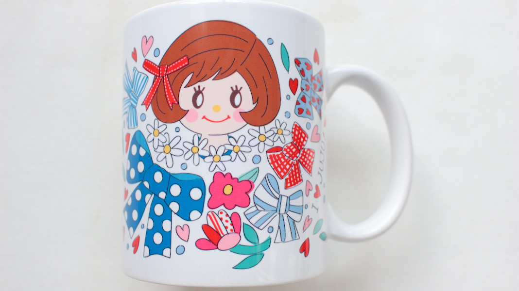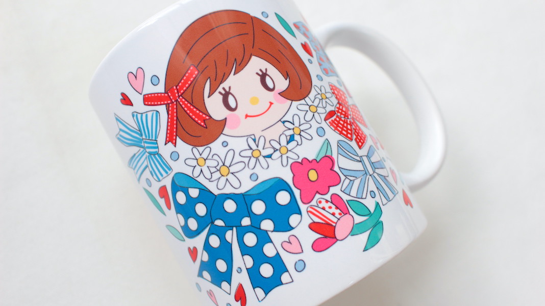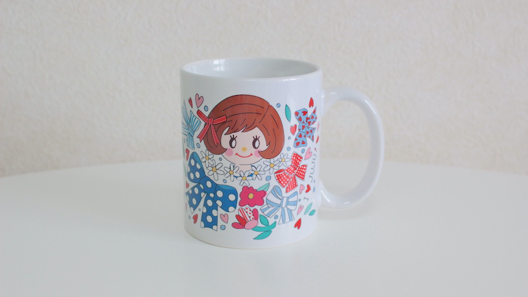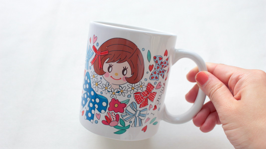 ジュジュちゃんがプリントされたオリジナルマグカップ。