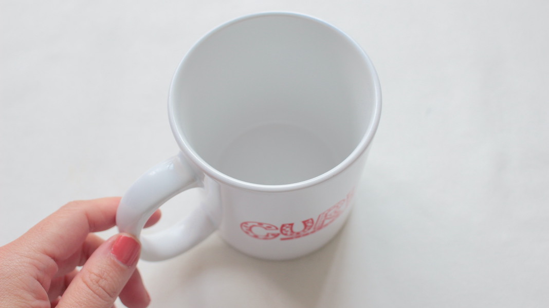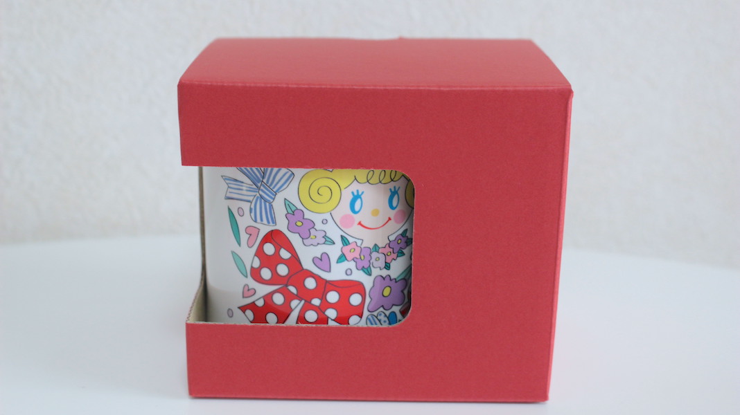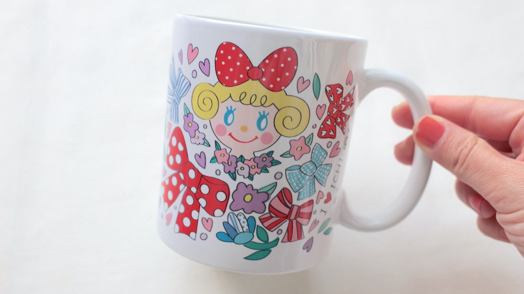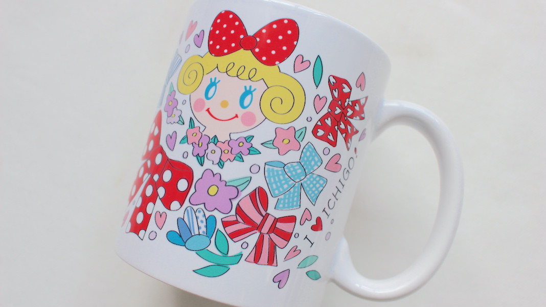 いちごちゃんがプリントされたオリジナルマグカップ。