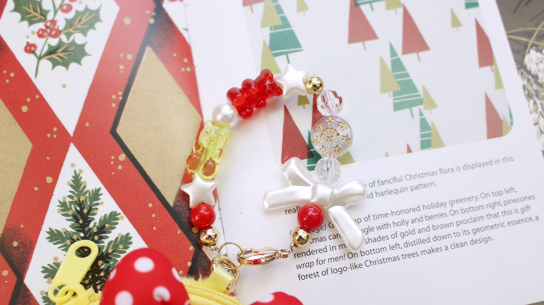 カラフルなビーズストラップつきで、バッグチャームのように使えるのも嬉しいポイント♡