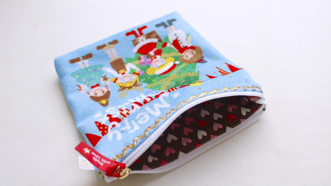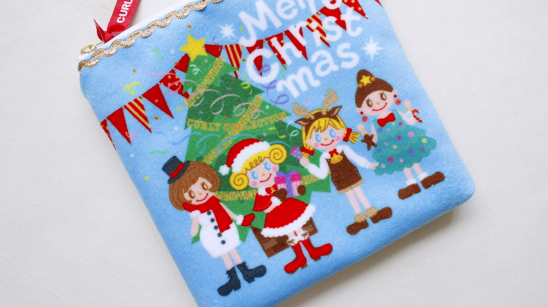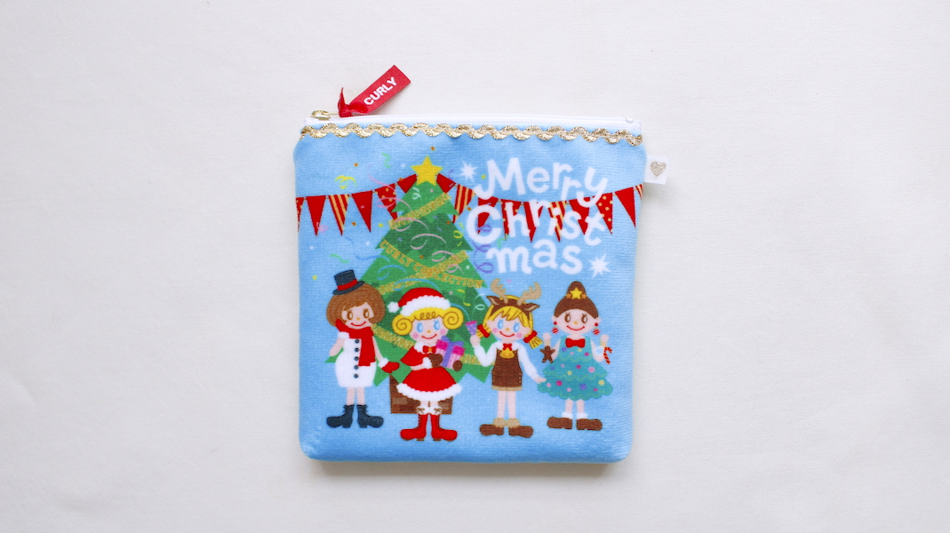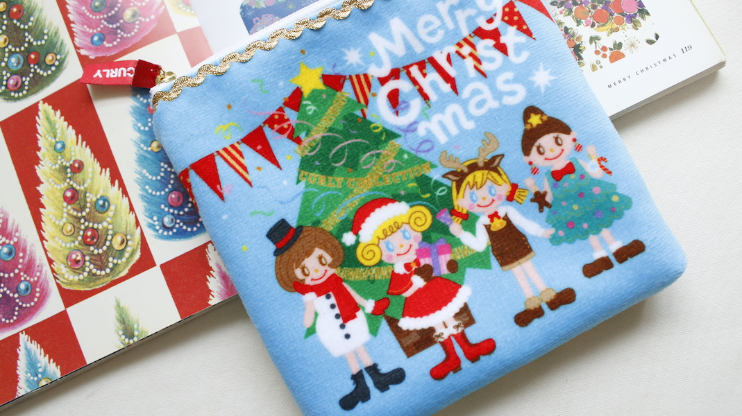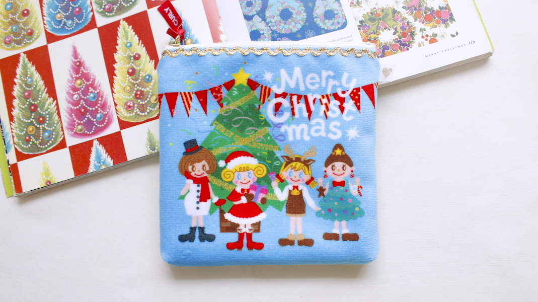 クリスマスパーティーをするガールズがプリントされたポーチ。