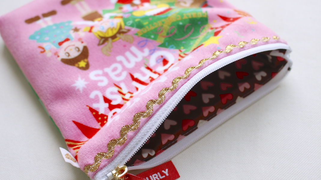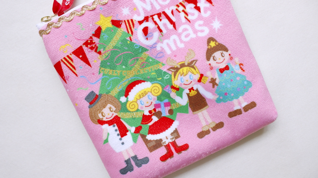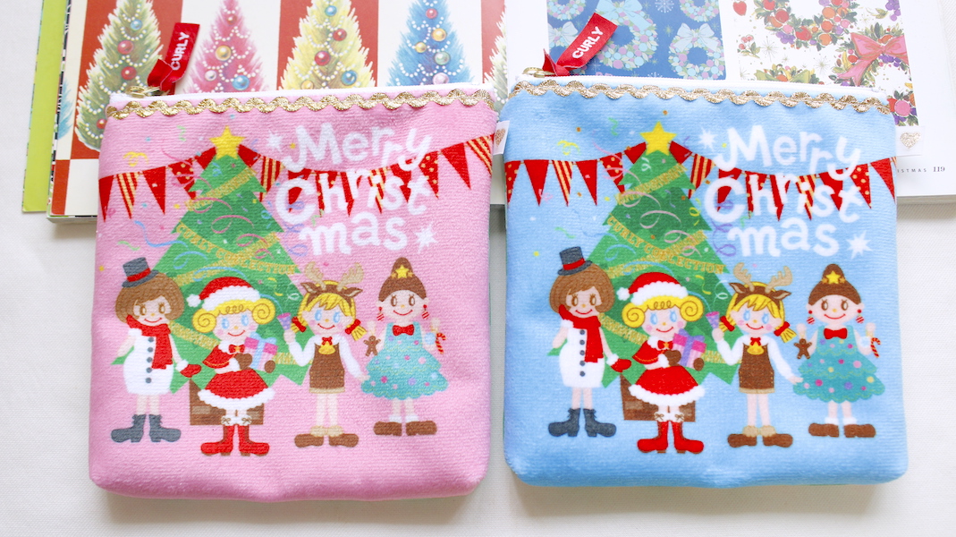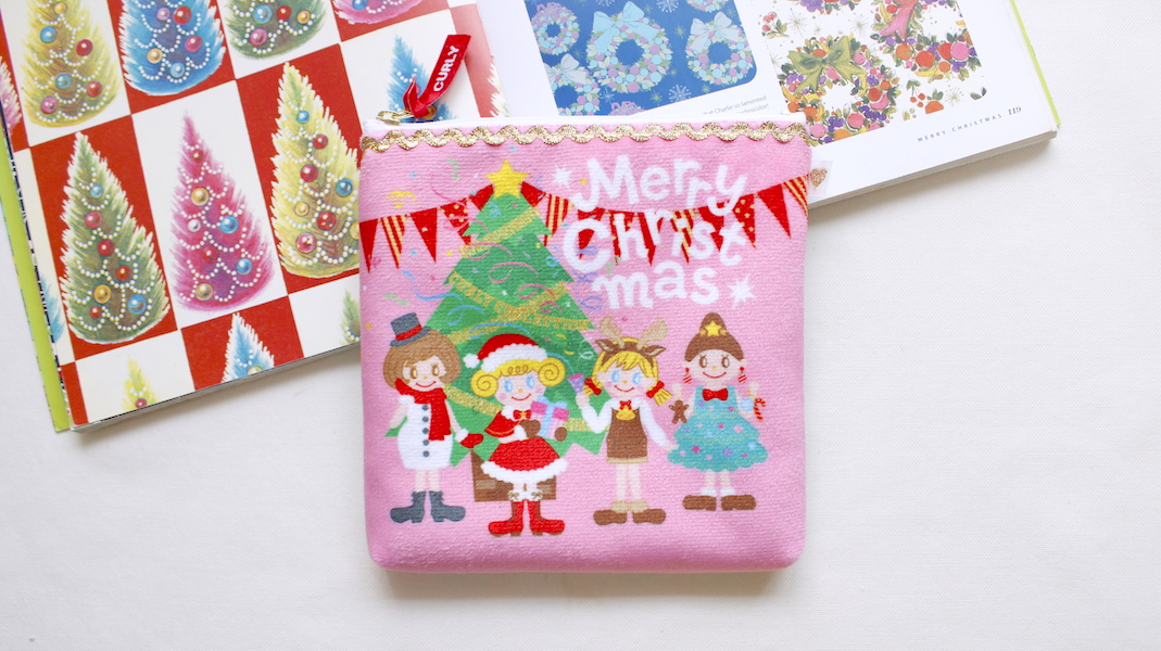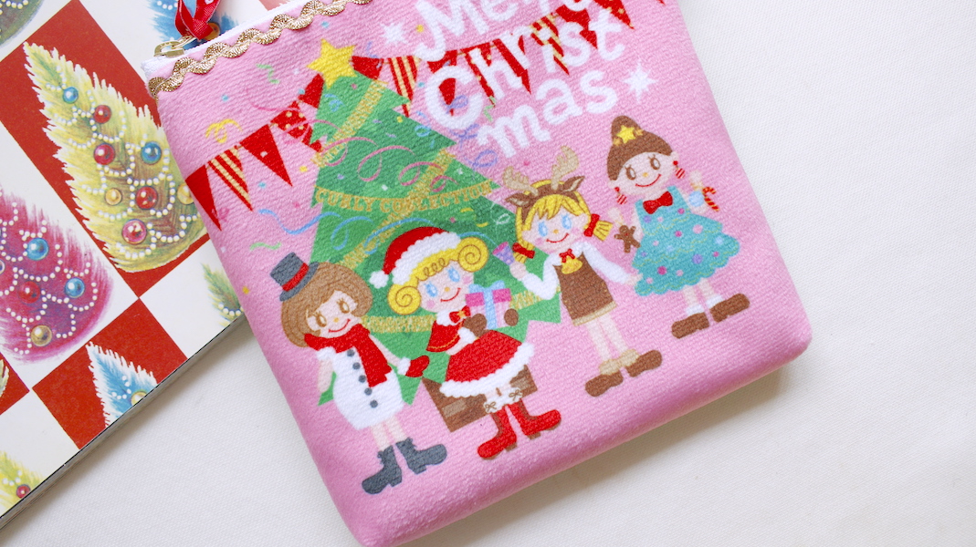 クリスマスパーティーをするガールズがプリントされたポーチ。