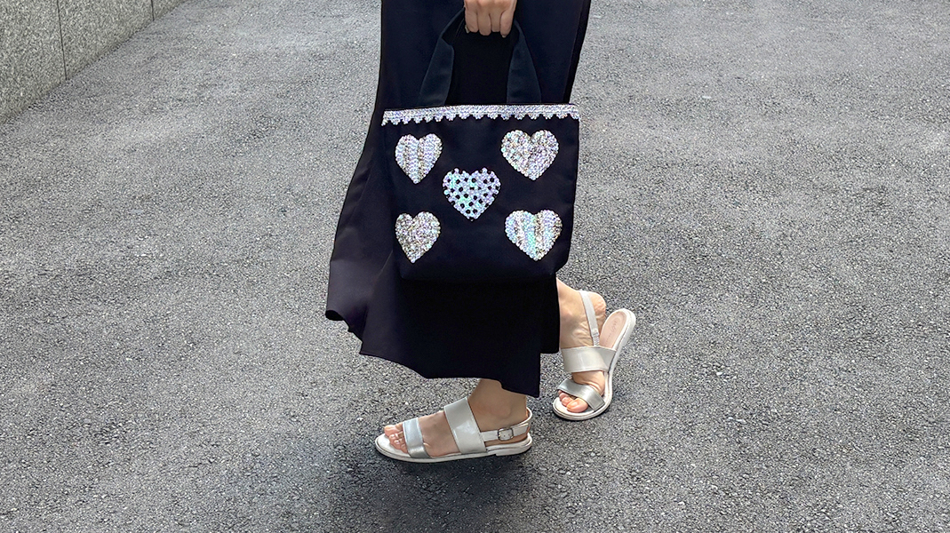 キラキラ感も楽しめるトートでお出かけをenjoyしてくださいね。