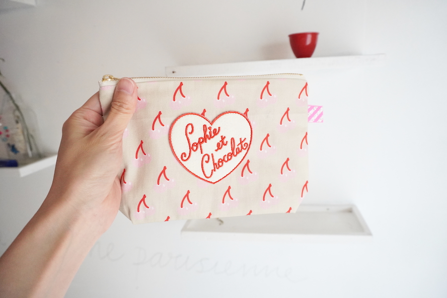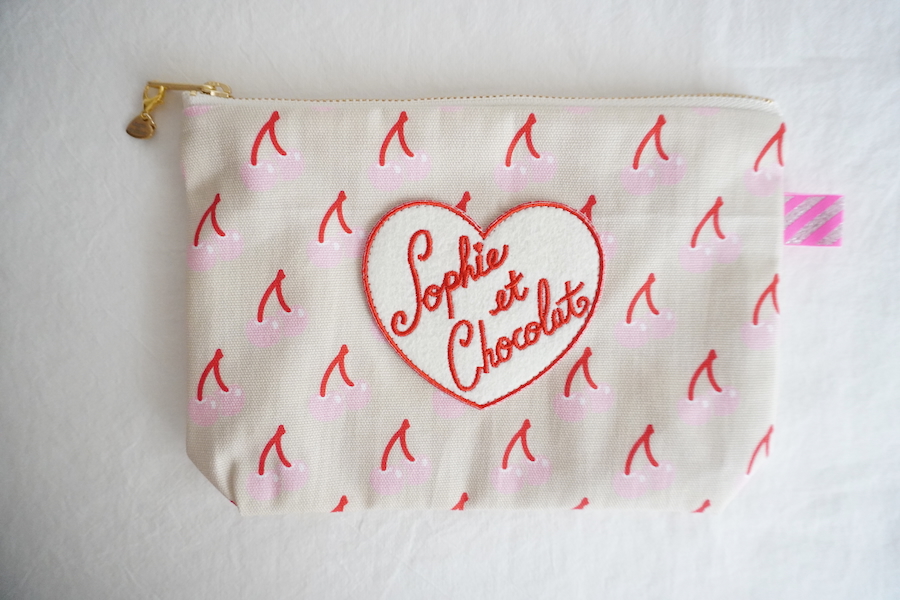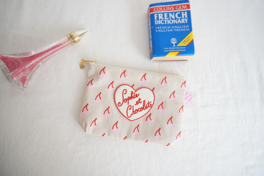 ソフィーオリジナル素材を組み合わせたファスナーポーチ。