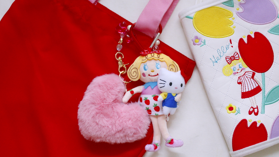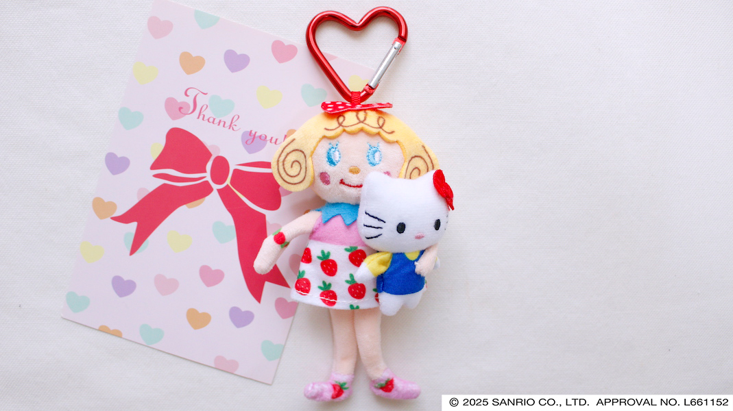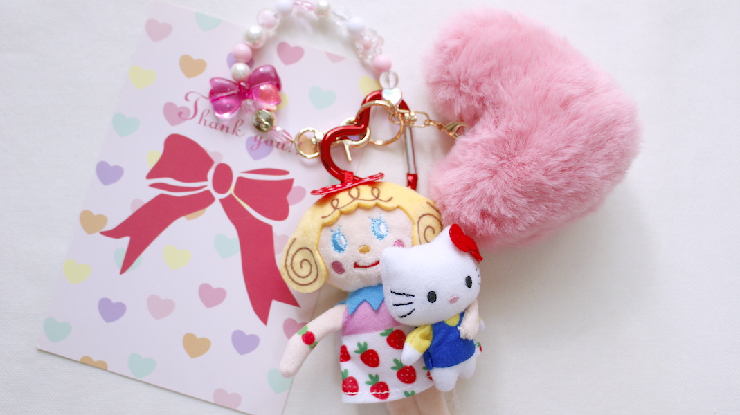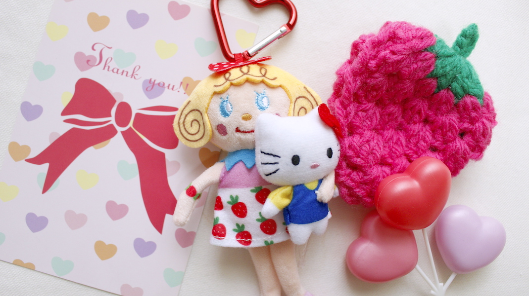 いちごちゃんがハローキティを抱っこした可愛いデザイン。
