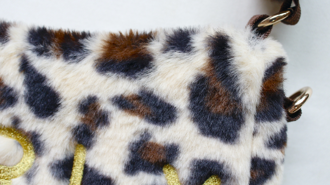 マスコット付きボアショルダーバッグ。