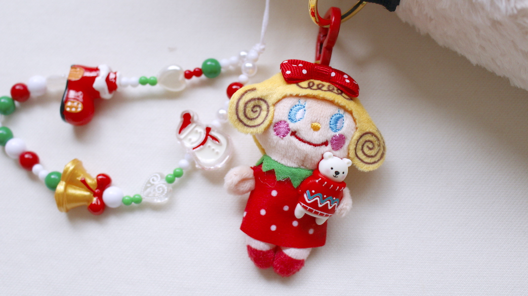 ※こちらのセットは、バッグ、ポーチ、ヘアクリップ2点、いちごちゃんマスコット、クリスマスストラップの6点セットです。