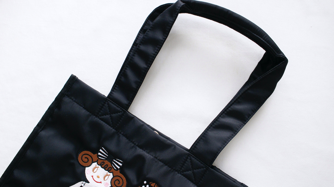 いちごちゃんとエヴィちゃんの刺繍トートバッグ。