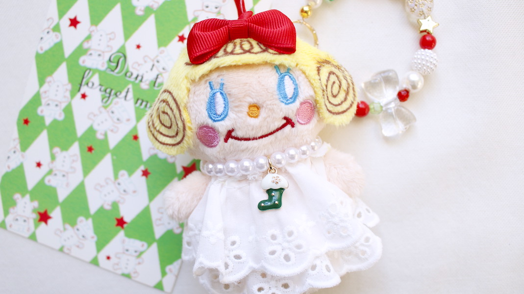 ポシェットを持ったいちごちゃんのぬいぐるみチャームが登場です♡