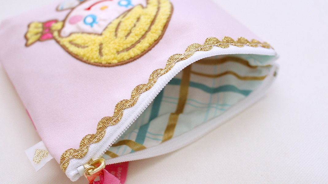 ぷくっとしたさがら刺繍がポイントのミニポーチ。