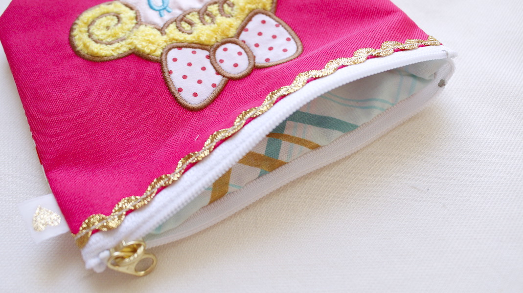 ぷくっとしたさがら刺繍がポイントのミニポーチ。