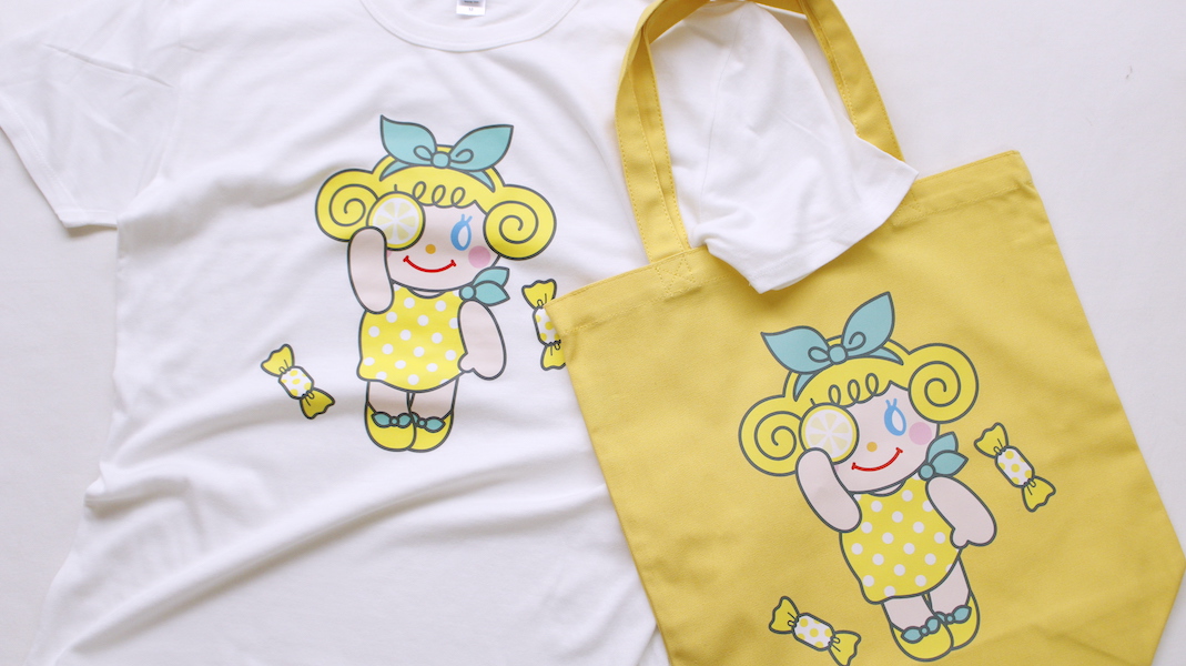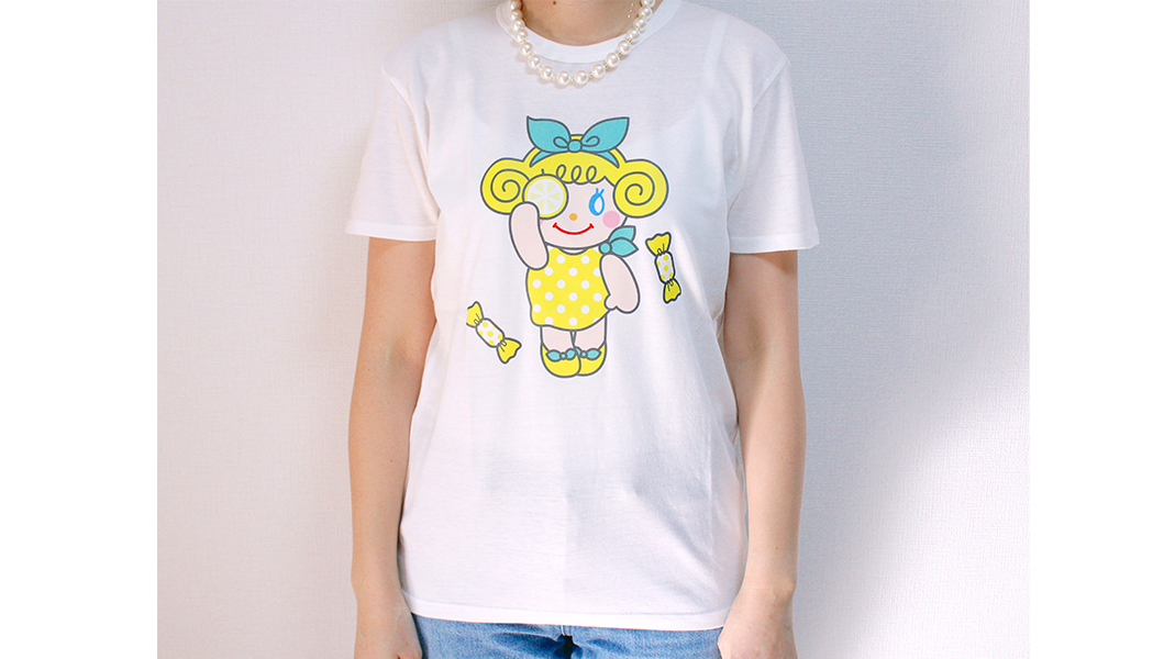 レモンの洋服を着たいちごちゃんが大きくプリントされたデザインです。