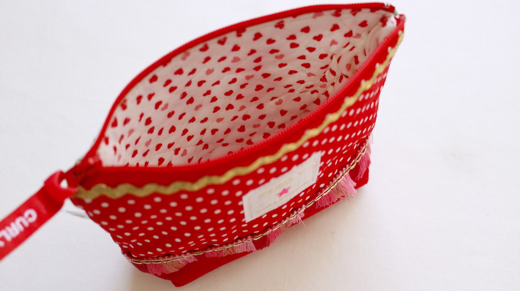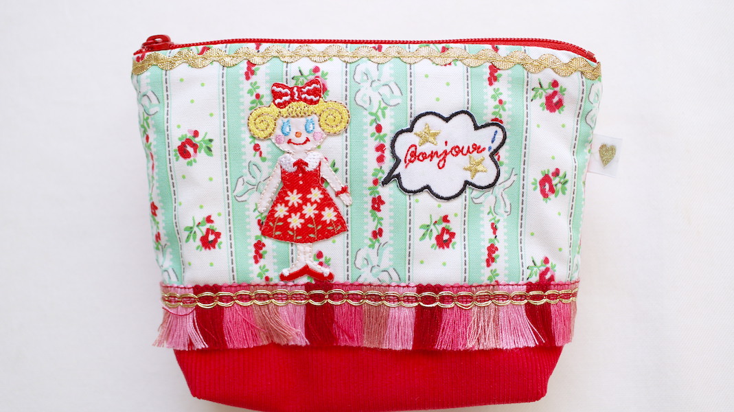 ガールズのワッペン付きコスメポーチ。