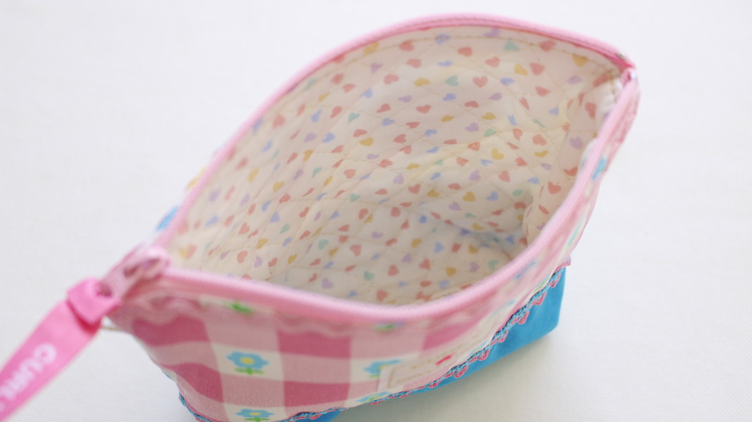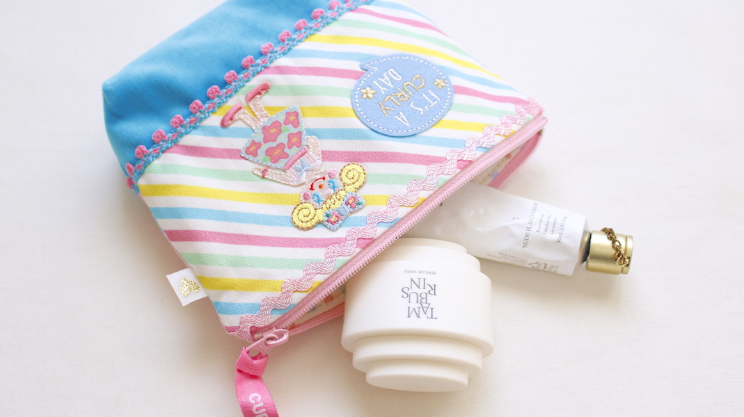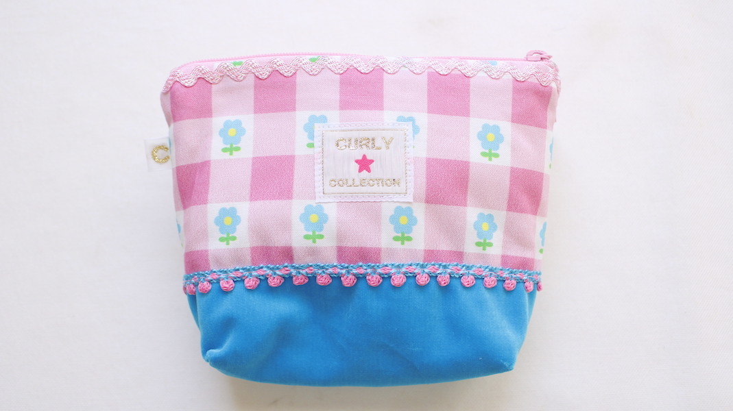 ガールズのワッペン付きコスメポーチ。