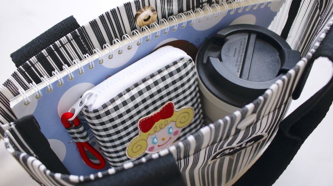 マチがたっぷりあるのでお財布やスマートフォン、コスメーポーチや、500mlのペットボトルが収納できます。
