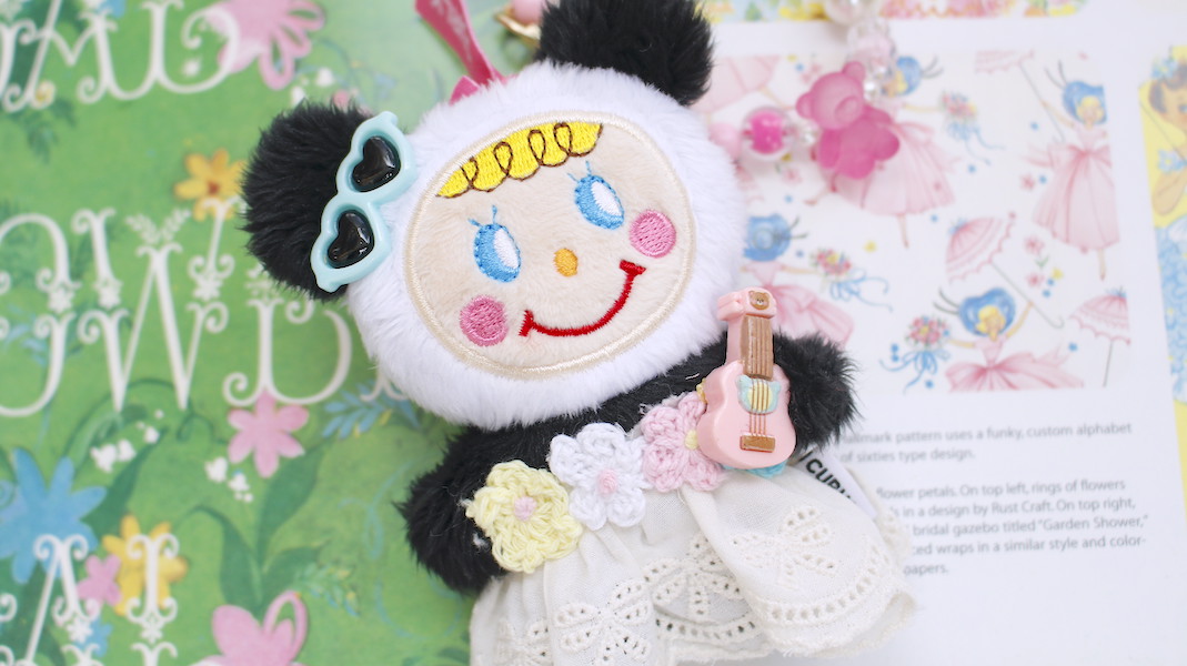 ふわふわパンダの着ぐるみを着たいちごちゃんチャーム。