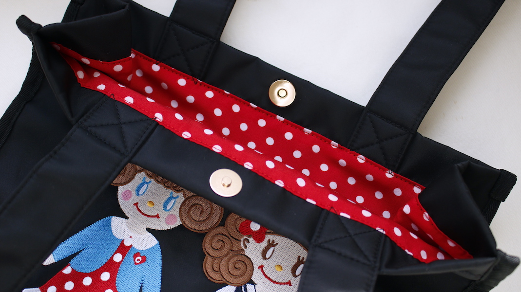 いちごちゃんとジンジャーちゃんの刺繍トートバッグ。