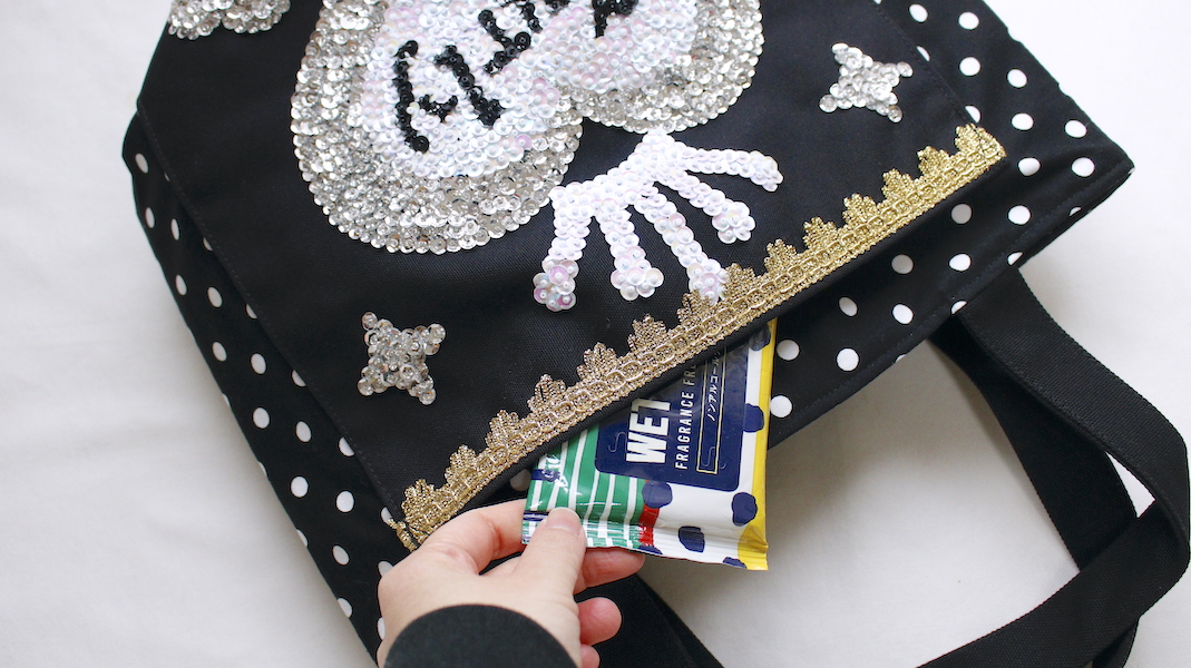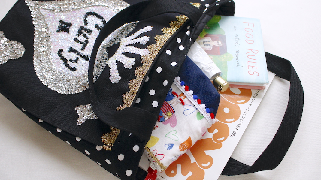 キラキラスパンコールをたっぷり使ったのトートバッグ。