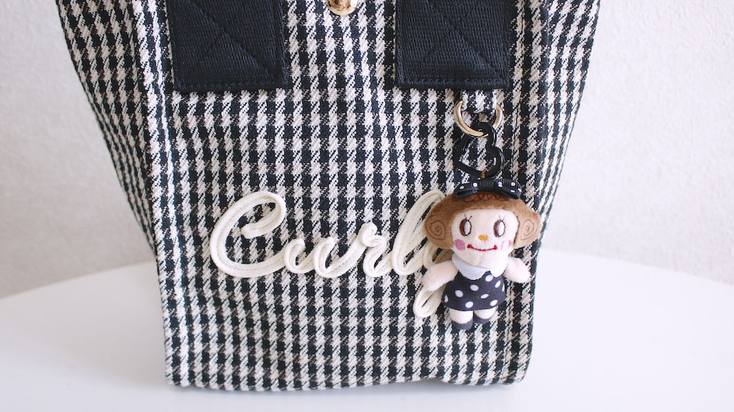 バッグにはCurlyのロゴ入り。チャームなしでもシンプルで可愛いデザインです。