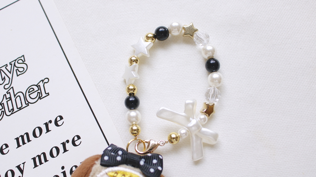 カラフルなビーズでお作りしたストラップがポイント!