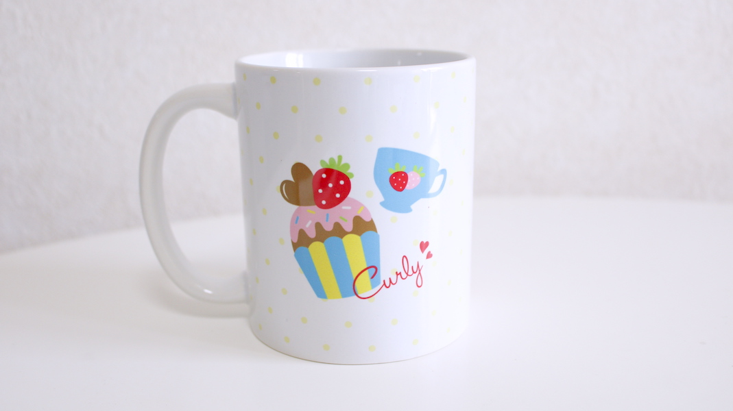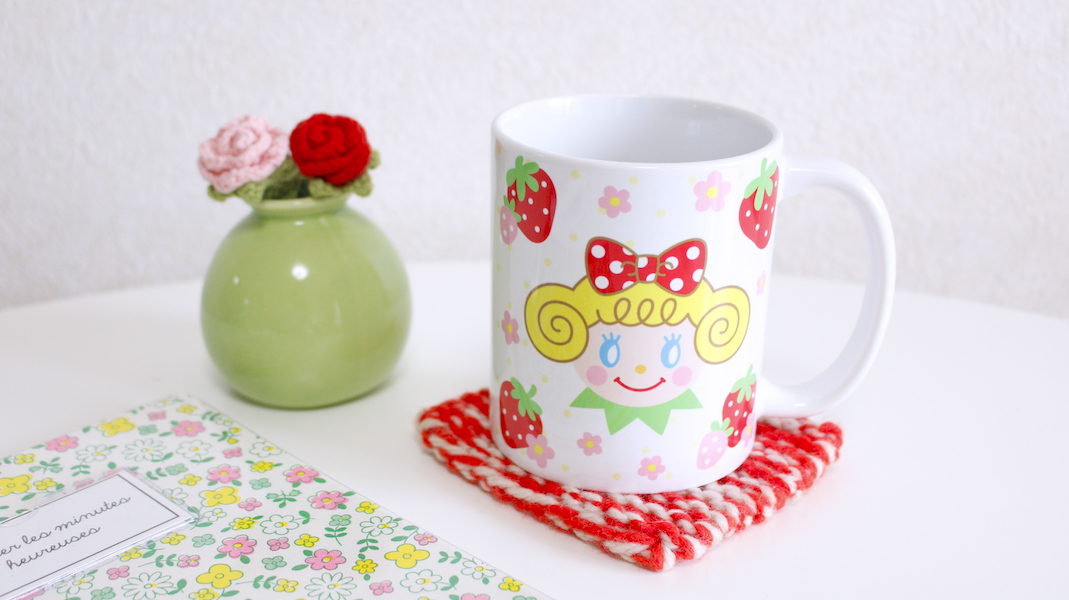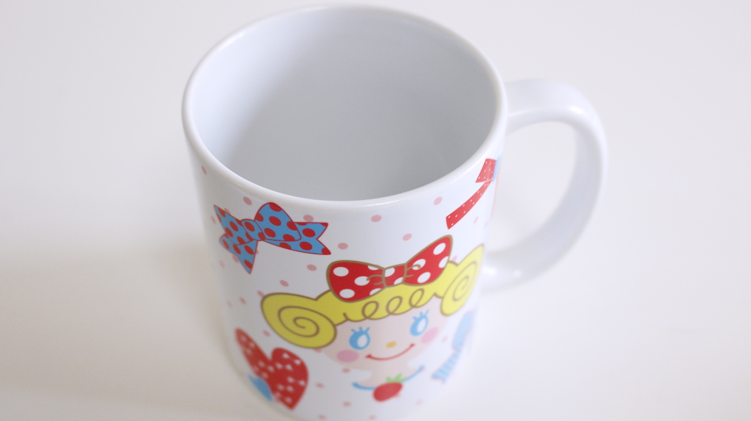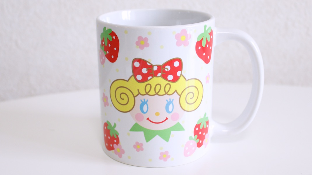 いちごちゃんがプリントされたオリジナルマグカップ。