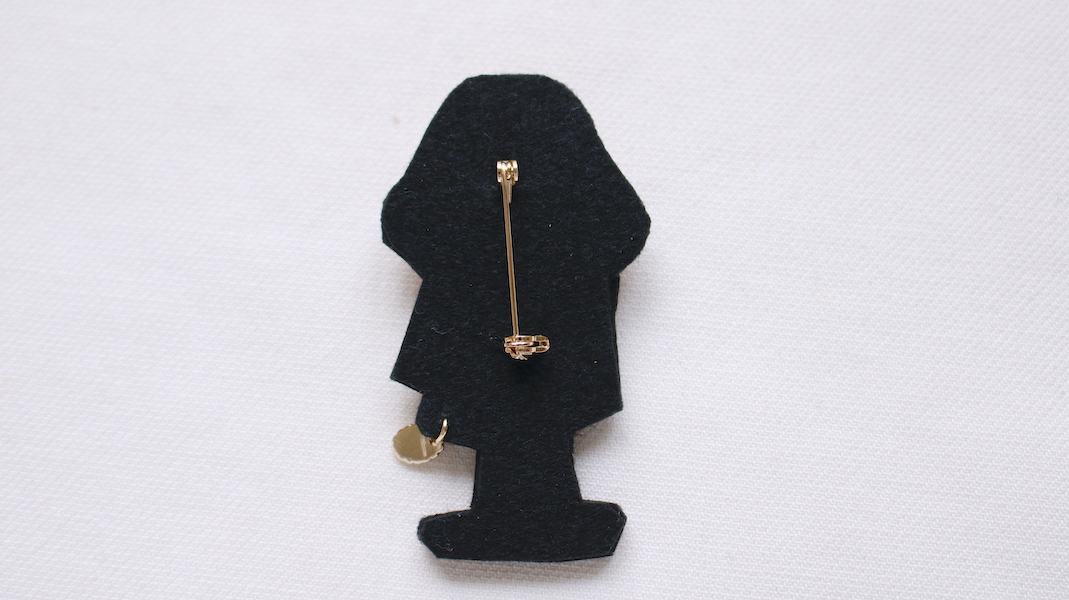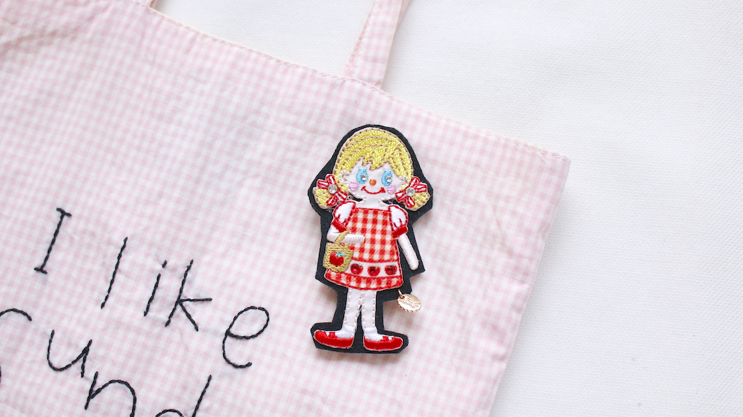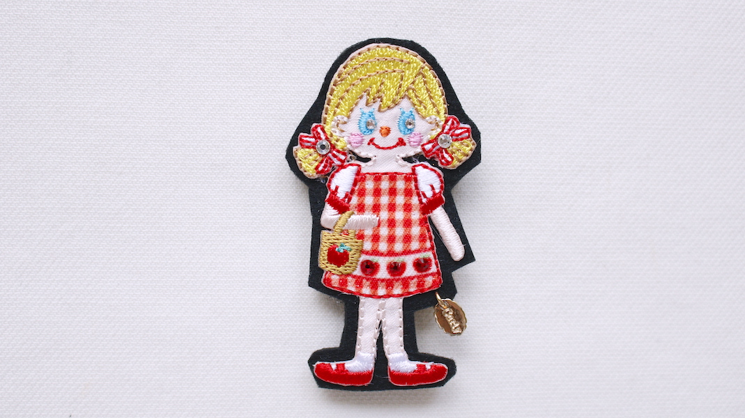 キラキラストーンをデコレーションしたワッペンブローチ。