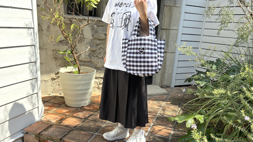シンプルでかわいいチェックプリントトートバッグ。
