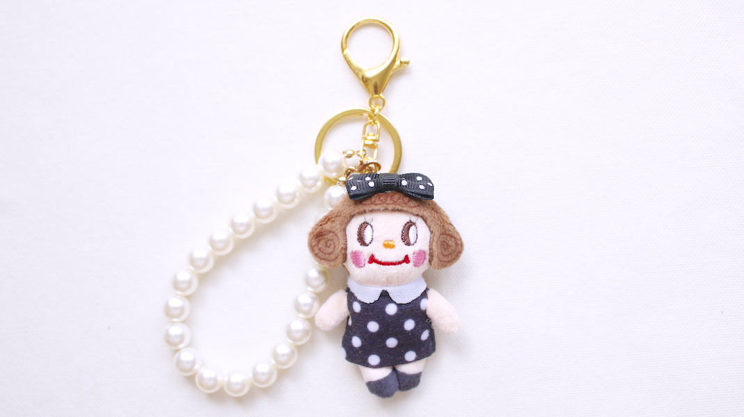 こちらのバッグにミニいちごちゃんのマスコットチャームをつけてお届けします。