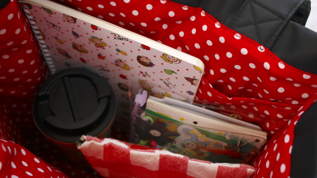 内生地は開く度に気分が上がるドット柄の生地を使用しています。