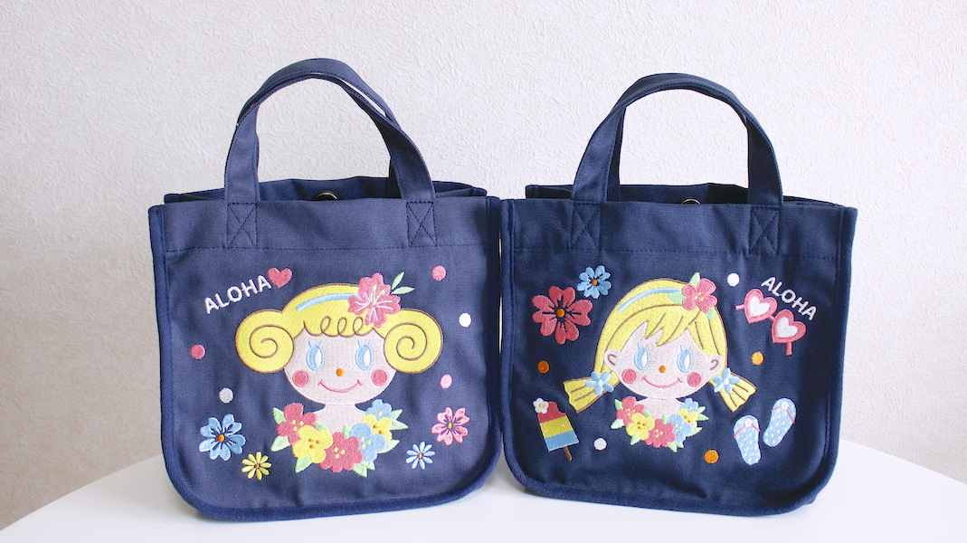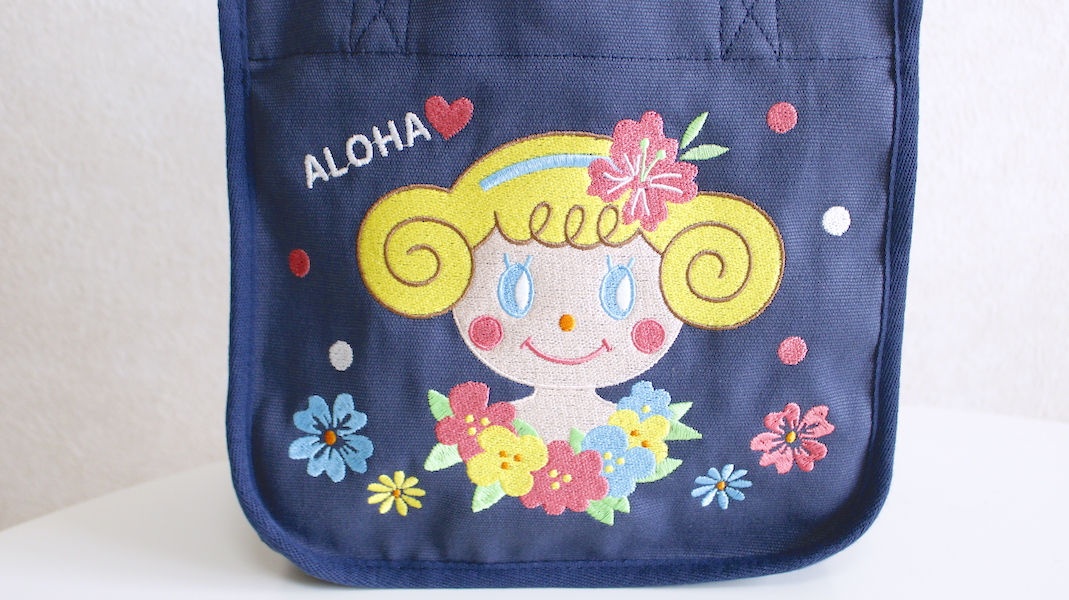 アロハいちごちゃんの刺繍バッグ。