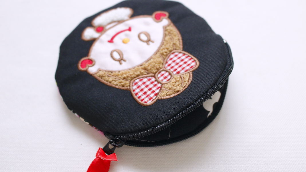 刺繍がかわいいサークルポーチです。