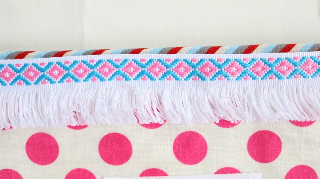 バッグやポーチのフチに付けたり、クッションやカーテンなどのインテリアにもgood!