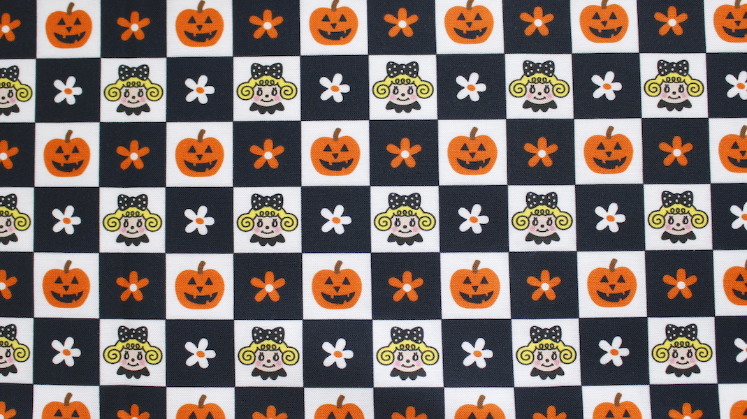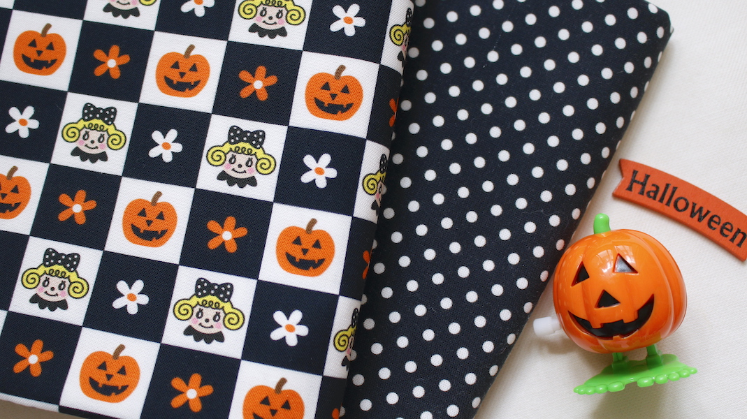 ハロウィンをテーマにしたいちごちゃんとジャックオーランタンの生地。