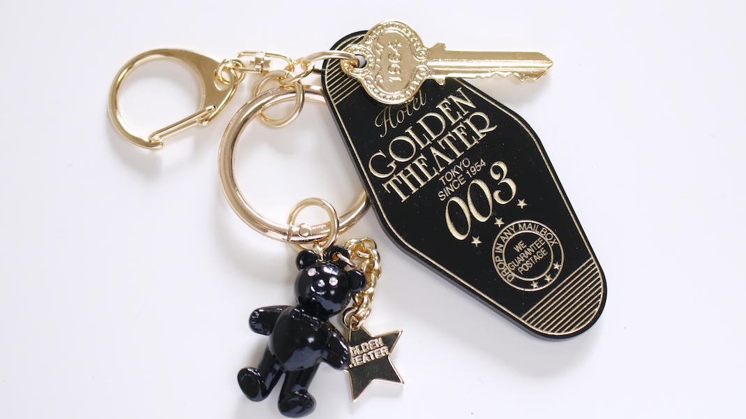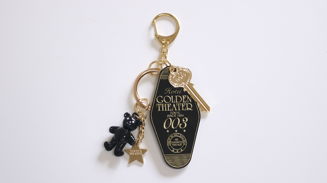 「Golden Theater」の架空ホテルのルームキーをイメージしたオリジナルチャーム。