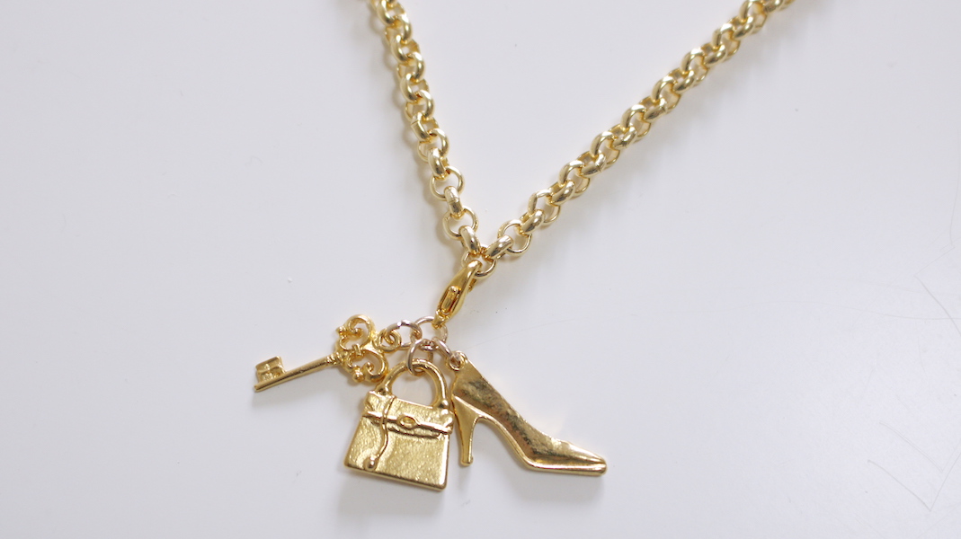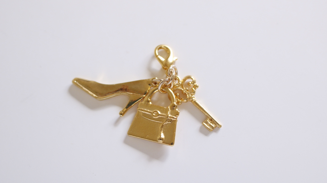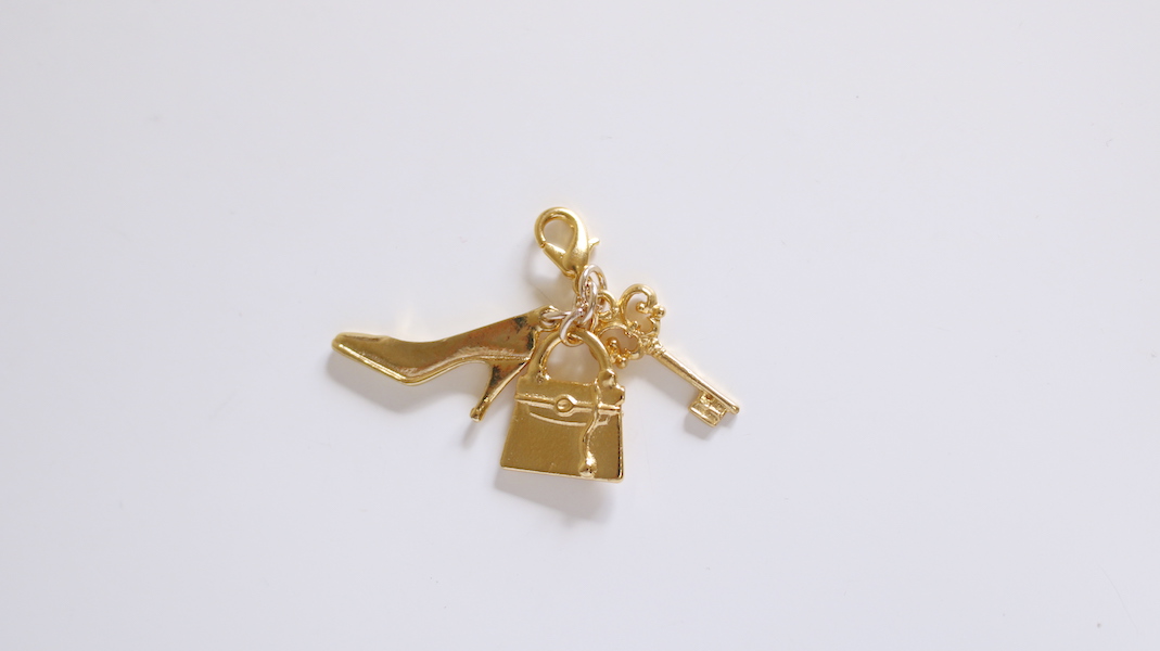 ヒール・バッグ・キーのパーツを重ねたファスナーチャーム。