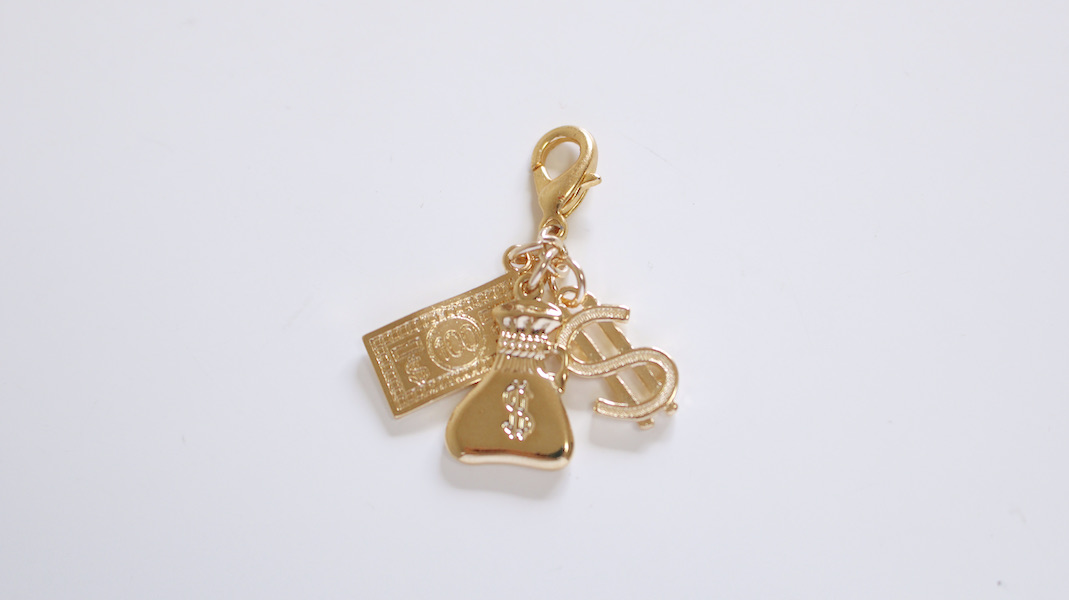 おしゃれなドルマークのパーツを重ねたファスナーチャーム。