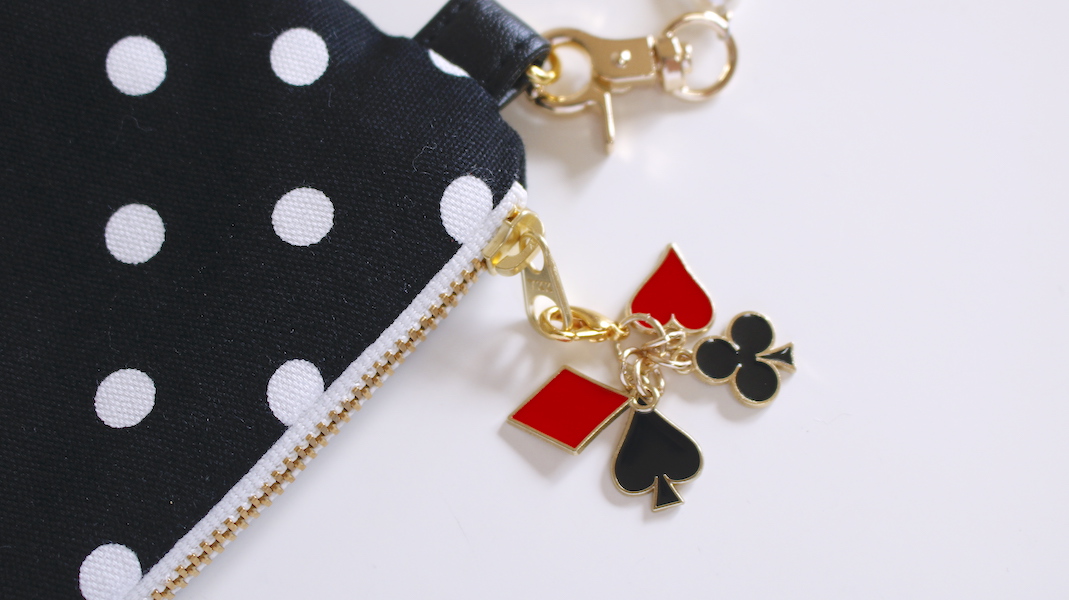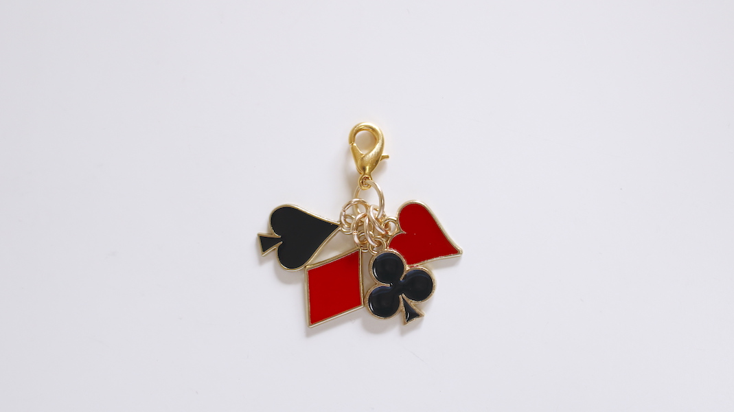 トランプのパーツを重ねたファスナーチャーム。