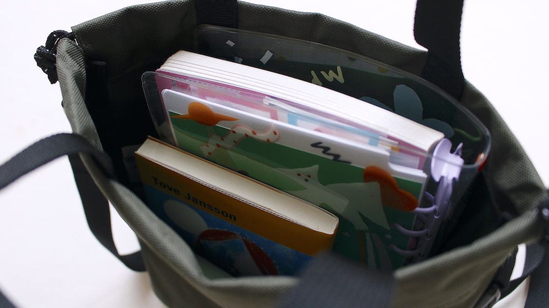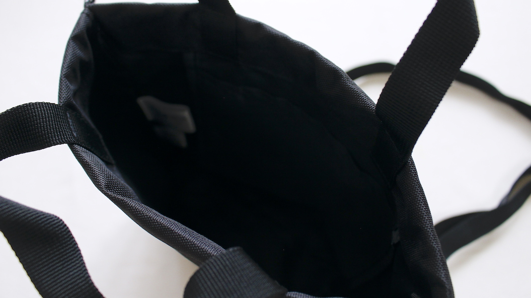 ちょっとしたお出かけに最適なコンパクトサイズで、ぎゅっと絞れるので中身が見える心配もありません。