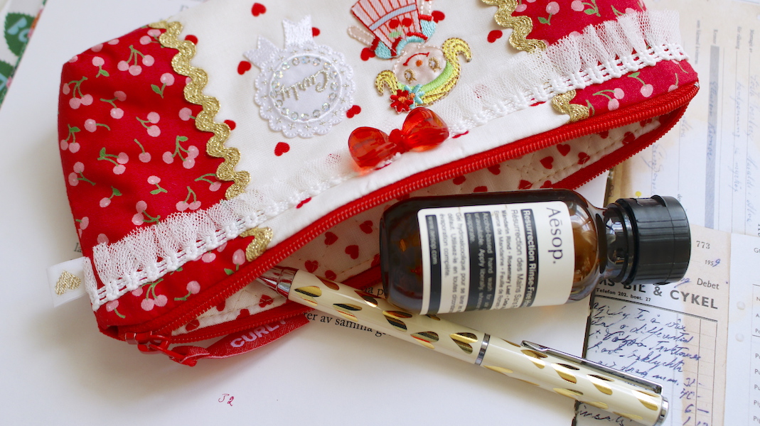 かわいいワッペンをポイントに、オリジナル生地やテープを組み合わせてお作りしたポーチです。