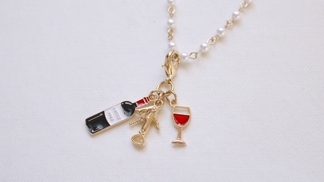 おしゃれなワインパーツを重ねたファスナーチャーム。