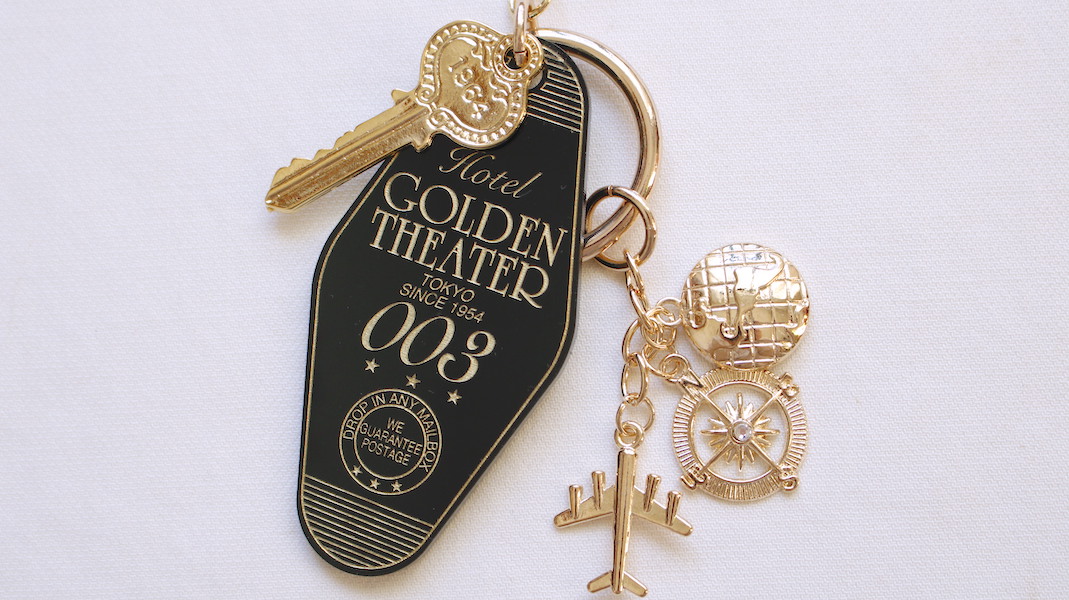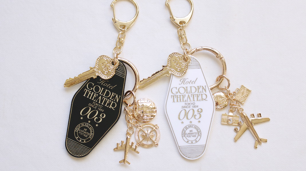 「Golden Theater」の架空ホテルのルームキーをイメージしたオリジナルチャーム。