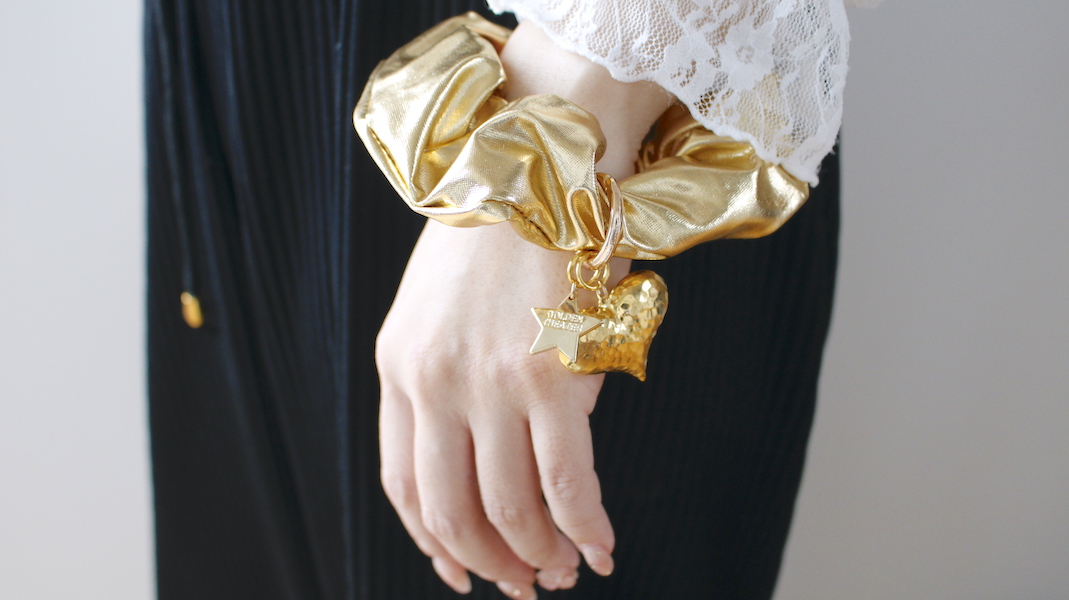 ゴールド生地とボリュームが目を引くシュシュ。