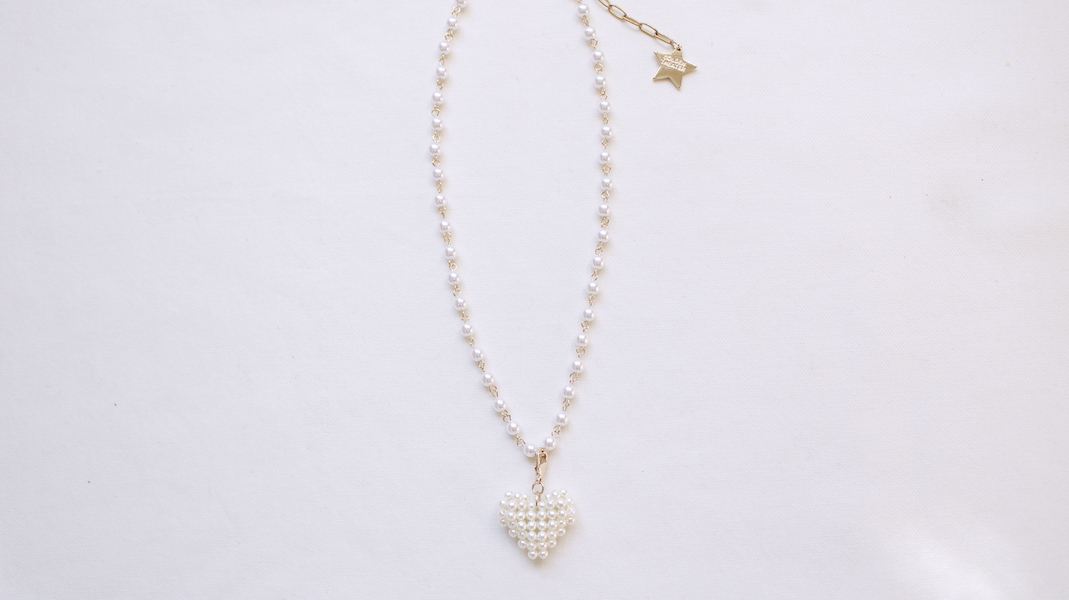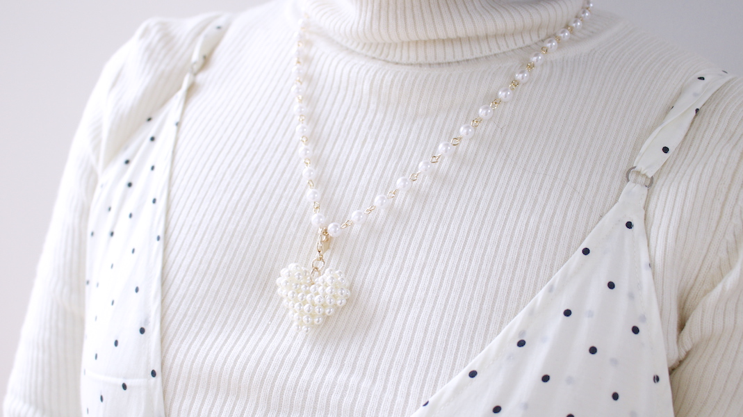 シンプルなTシャツやカットソー、ブラウスの襟元からチラリと見せるだけで、さりげなく華やかな印象に。