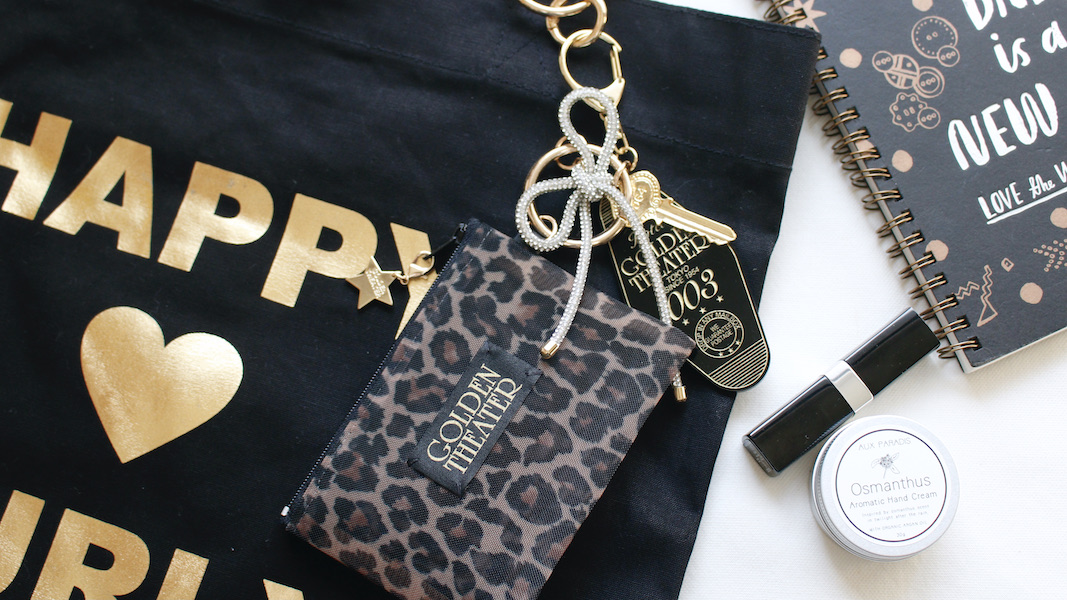 ポーチには、「Golden Theater」の架空ホテルのルームキーをイメージしたオリジナルチャームをおつけしました。